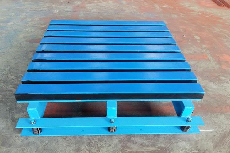 2、適用范圍:適用各式帶式輸送機,特別適用于長距離,高運速,大運量,高強度,工況惡劣的帶式輸送機。主要用于替代緩沖托輥,緩沖床由緩沖條組成,而緩沖條主要應用優(yōu)良的高彈性特種橡膠層充分有效吸收了物料下落時的沖擊力,大大降低了物料下落時對輸送帶的沖擊,改善了落料點的受力狀況。
